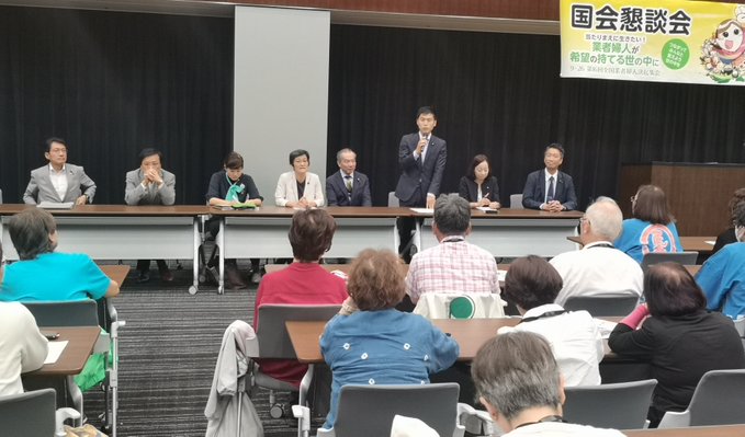 2019年9月26日 全商連婦人部協議会による国会懇談会 全商連婦人部協議会による国会懇談会に出席し、全国からお集まりのみなさんにご挨拶。 景気・暮らし・生業に大打撃をあたえる10月増税中止! 家族従業員の働き分を経費に認めない所得税法56条の廃止! 最後までがんばりましょう。 前へ次へ